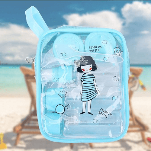 ست مسافرتی محصولات پوستی و آرایشی 5تکه – رنگ آبی یه پک 8 تکه جمع وجور که بار مسافرتمون رو خیلی سبک میکنه و دیگه لازم نیست همه لوازم بهداشتی مونو با ظرف بزرگ و اصلیش با خودمون حمل کنیم.